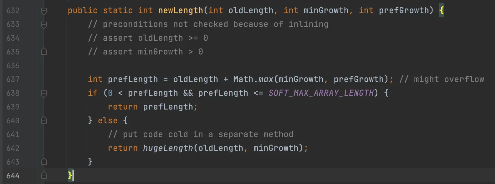 ArraysSupport.newLength(int oldLength, int minGrowth, int prefGrowth) 메서드