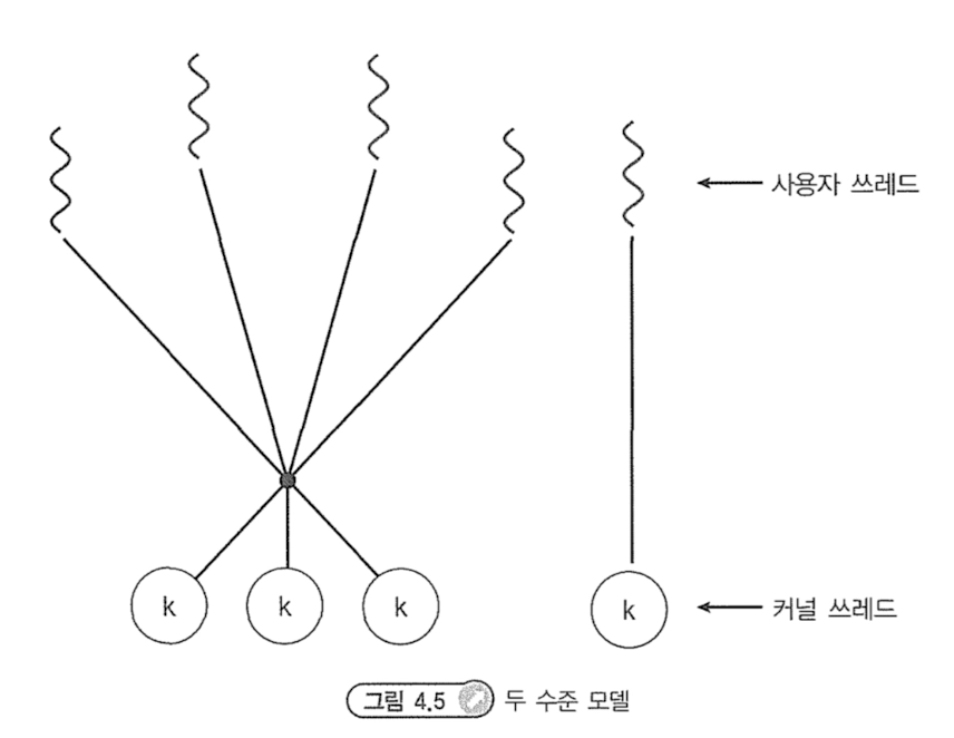사용자 레벨의 쓰레드들은 궁극적으로 커널 레벨의 쓰레드에 사상되어야 동작할 수 있다. 실제로 작업을 수행하는 것은 운영체제고, 이를 위한 실행 흐름이 커널 쓰레드기 때문이다.