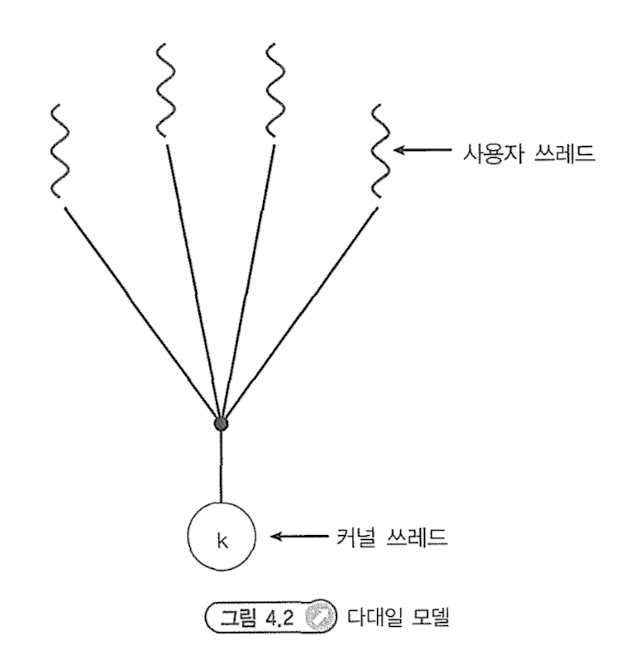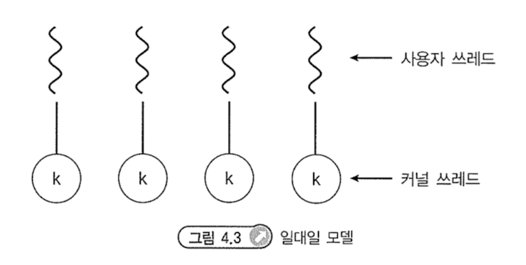 각 사용자 쓰레드를 하나의 커널 쓰레드로 사상되는 방식을 말한다.